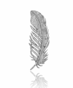 Elegant stylized leaf brooch and pendant in rhodium-plated 925 silver with sparkling zircons,bright, refined, and versatile jewelry piece