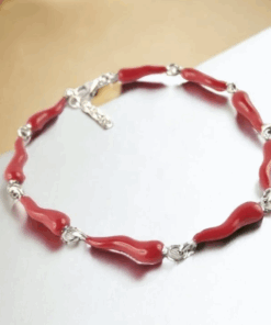 Red Coral and Green Agate Bracelet in 925 Sterling Silver