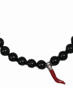 Black Agate and Red Coral horn pendant, bracelet for men , black , coral horn pendant , corniciello bracciale,made in italy, unisex jewel