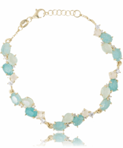 ๐ Gold-Plated 925 Silver Bracelet with Sky Blue Hydrothermal Stones and Cubic Zirconia 17โ19 cm