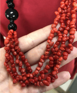 Red Coral and Black Agate Necklace, coral necklace, long necklace, coral and agate, black agate, Mediterranean jewellery, red coral