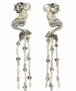 Sculptural Sterling Silver Mermaid Earrings with Pearls & Crystals , Handmade in Italy