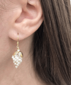 Elegant handmade grape earrings crafted in Italy from 18K gold plated sterling silver and adorned with luminous white pearls, each piece is unique, reflecting the beauty of true Italian craftsmanship