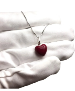 Red coral heart pendant, necklace with red heart, valentine’s day gift, heart pendant,