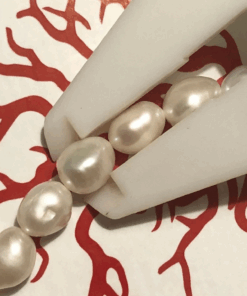 White pearls necklace with red coral , pearls and coral, fresh pearls necklace , fresh pearls , necklace with red coral fringes