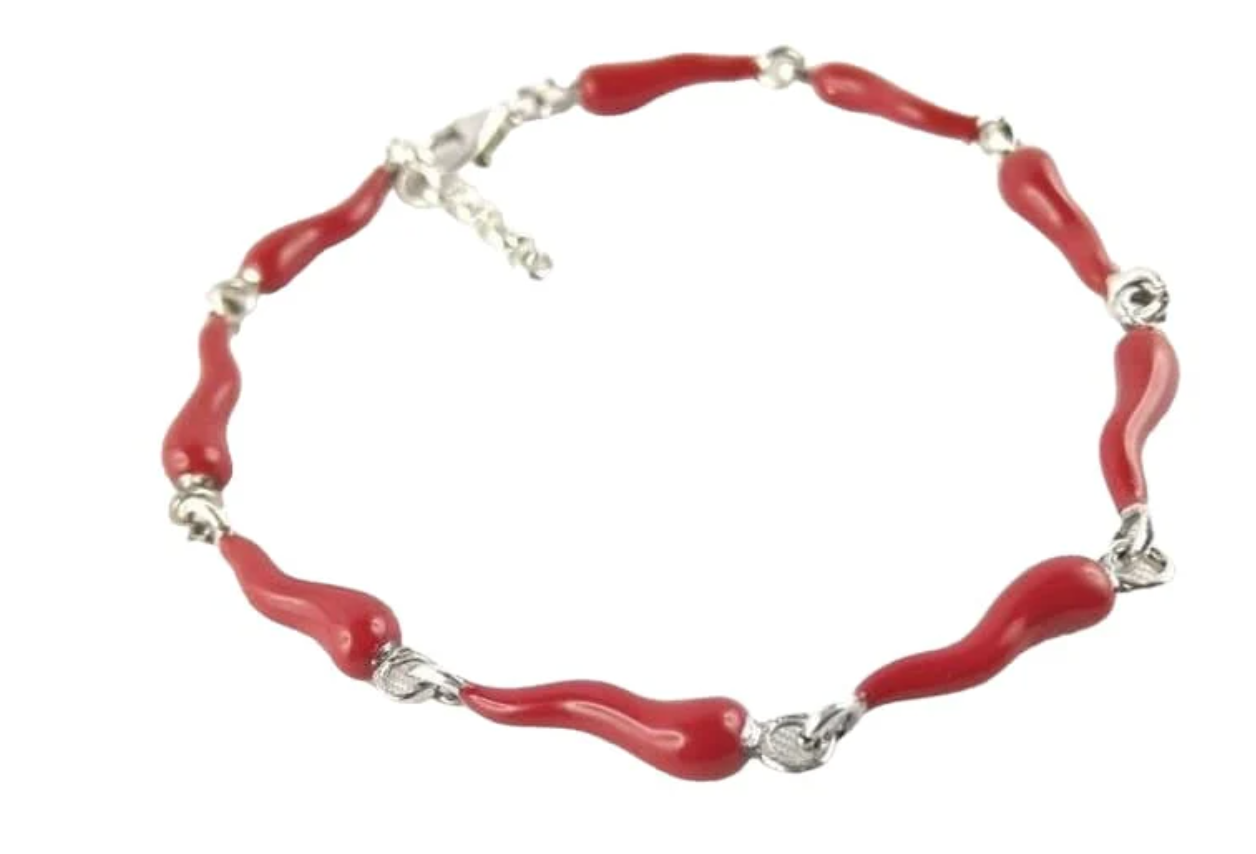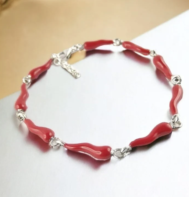 Handmade 925 Sterling Silver Bracelet with 9 Red Lucky Horns | Unique Lucky Charm Jewelry