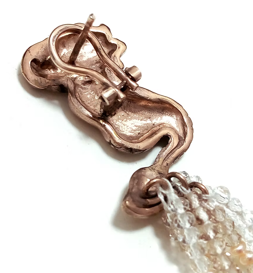 Sculptural Sterling Silver Mermaid Earrings with Pearls & Crystals , Handmade in Italy