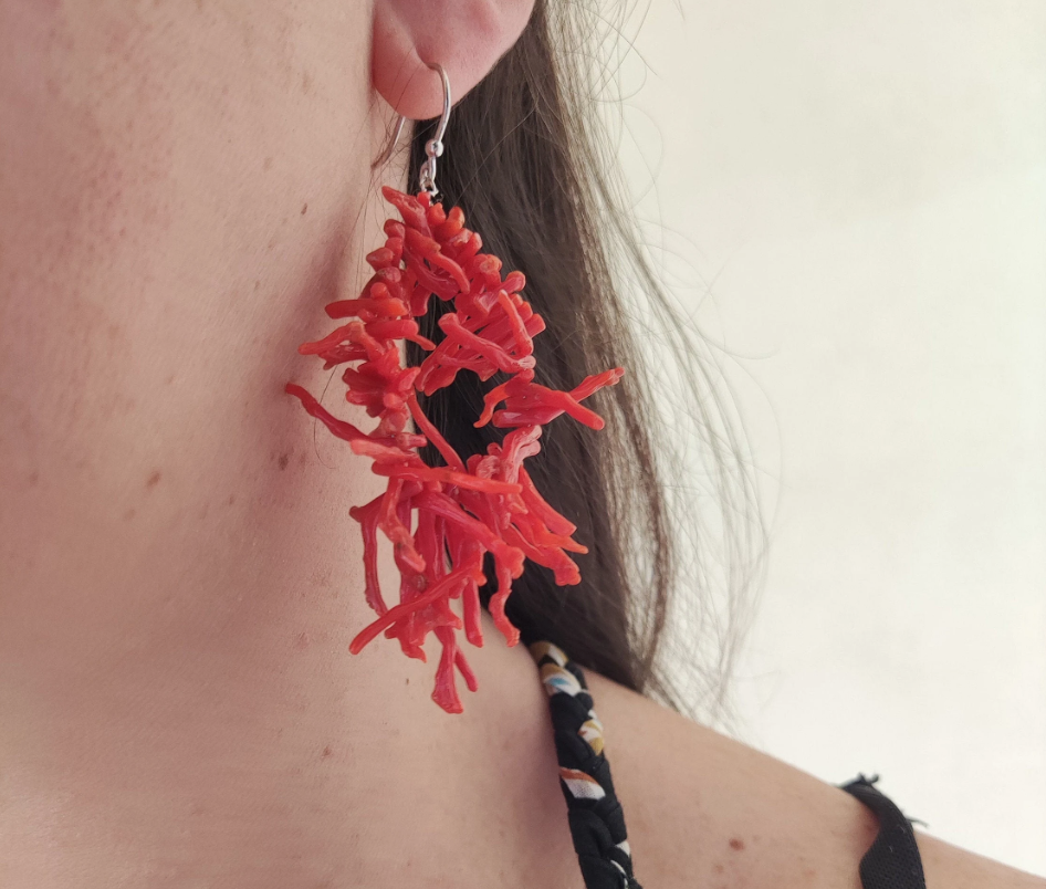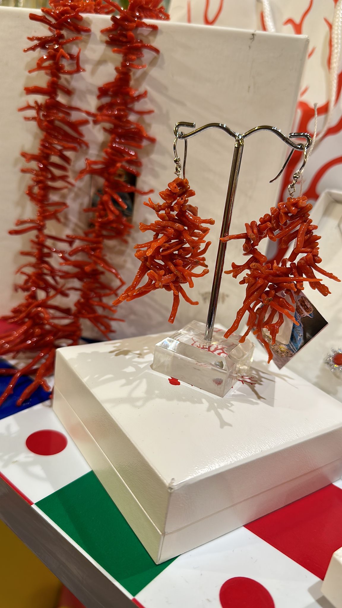 Red Coral fringes earrings mounted on silver 925 with gold bath