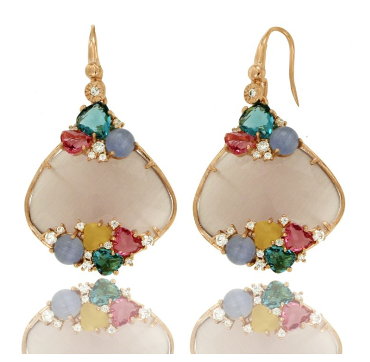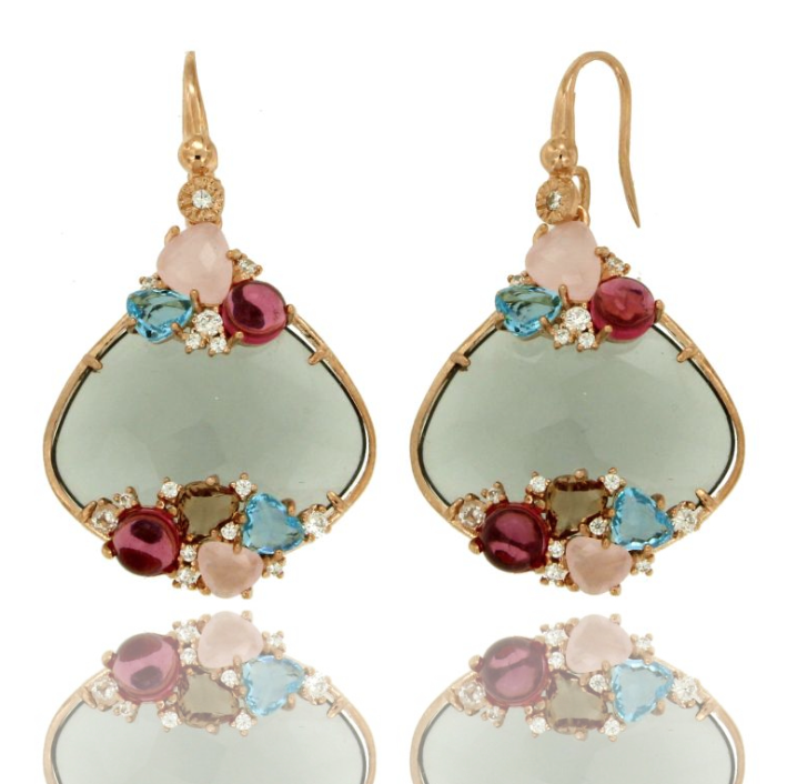 Elevate your elegance with these stunning dangling earrings in rose gold-plated 925 sterling silver, featuring a uniquely cut irregular hydrothermal stone and sparkling zirconia accents. Expertly crafted in Italy, these earrings blend contemporary design with timeless luxury.