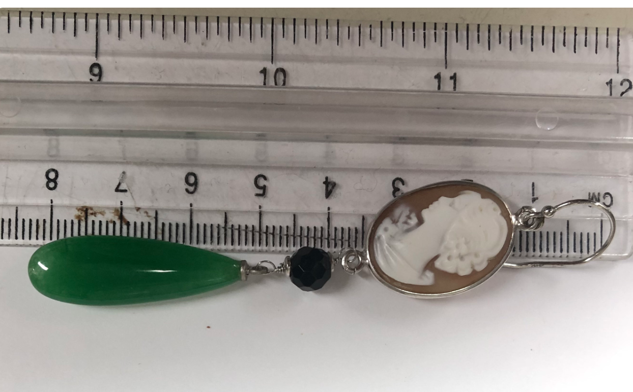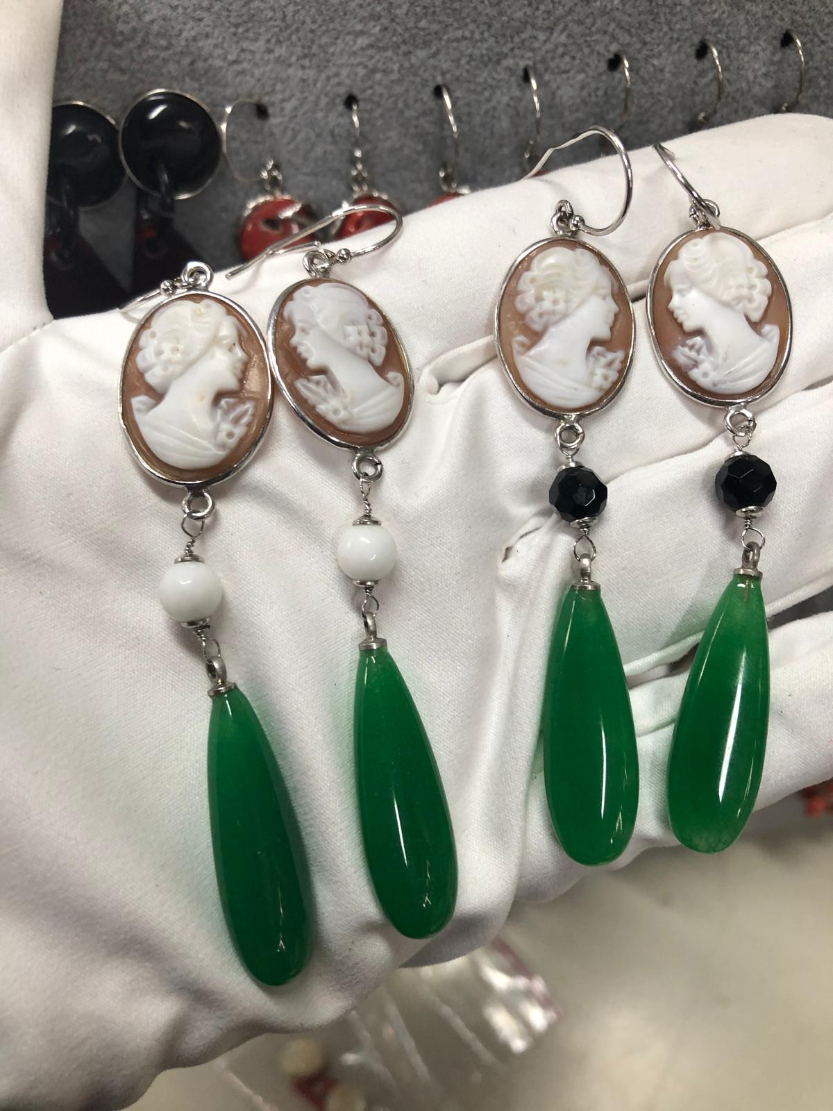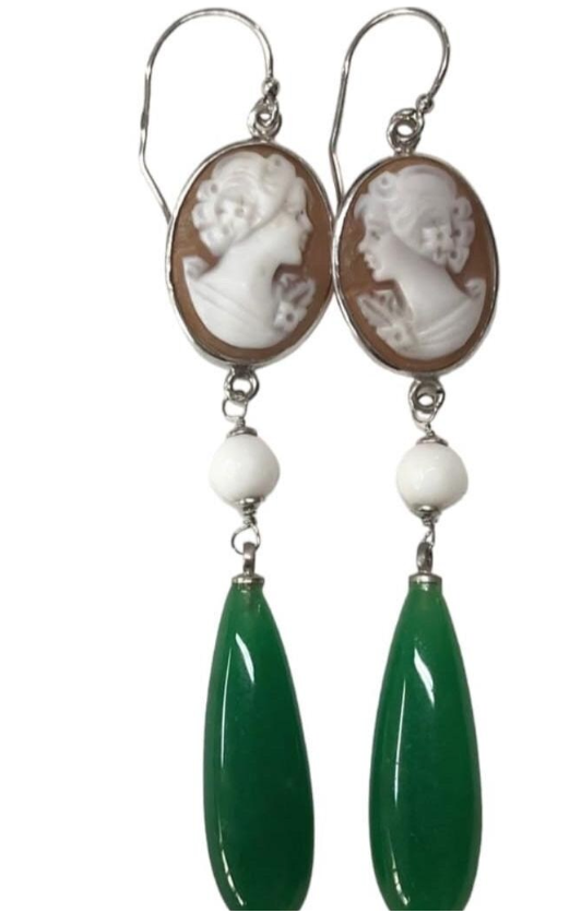 These earrings not only add a touch of sophistication to your ensemble but also carry the charm of artisanal craftsmanship. The combination of vibrant green agate and the timeless allure of cameo makes them a perfect addition to your jewelry collection or a thoughtful gift for someone special.
