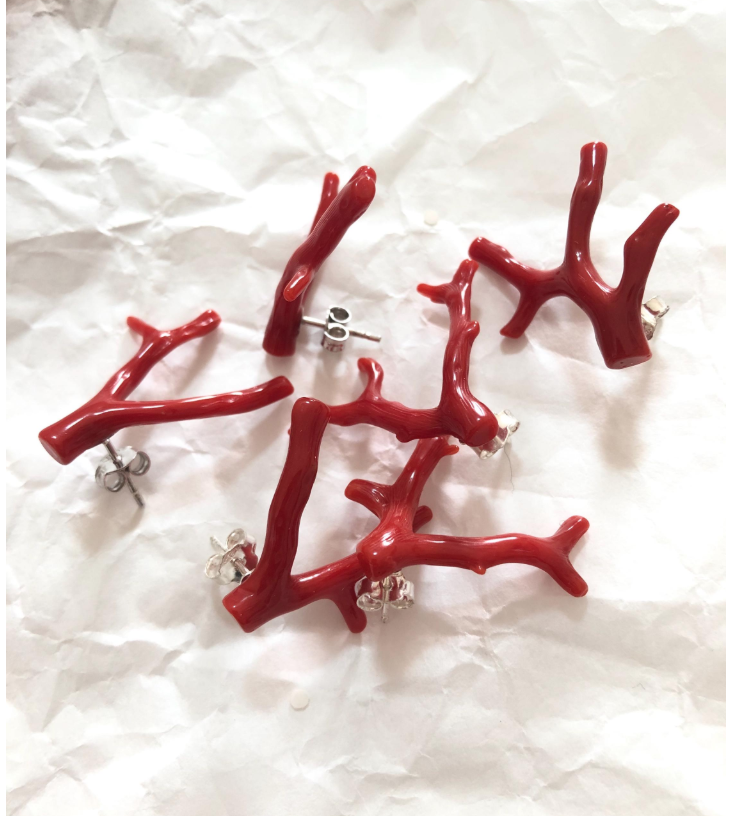 Silver earrings with a small branch of red coral – Given the authenticity of the product, both the shape and workmanship may vary, making each piece of jewelry unique.