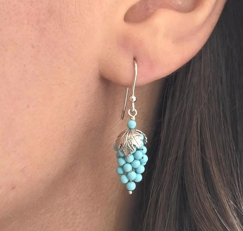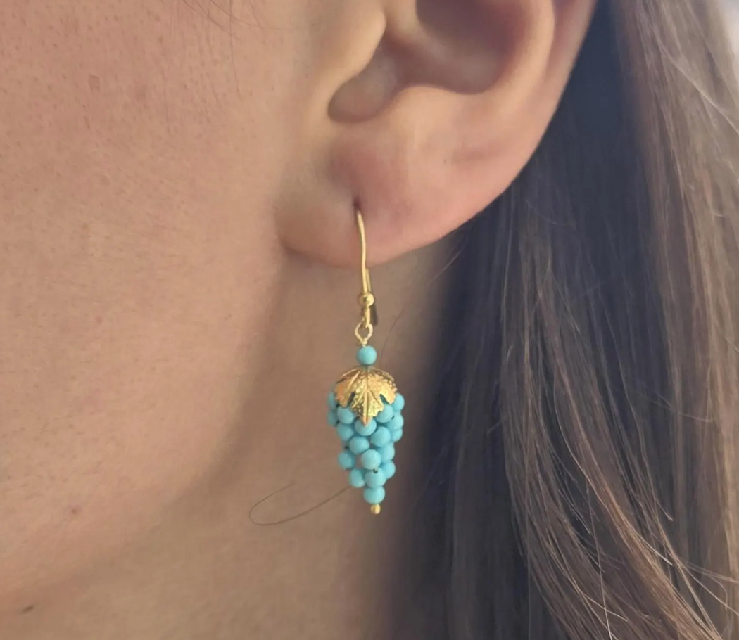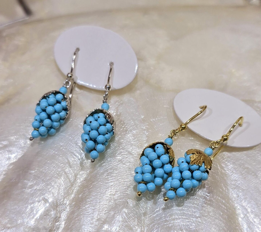Dangling grape earrings made of turquoise paste mounted on silver 925, available on silver 925 with gold bath