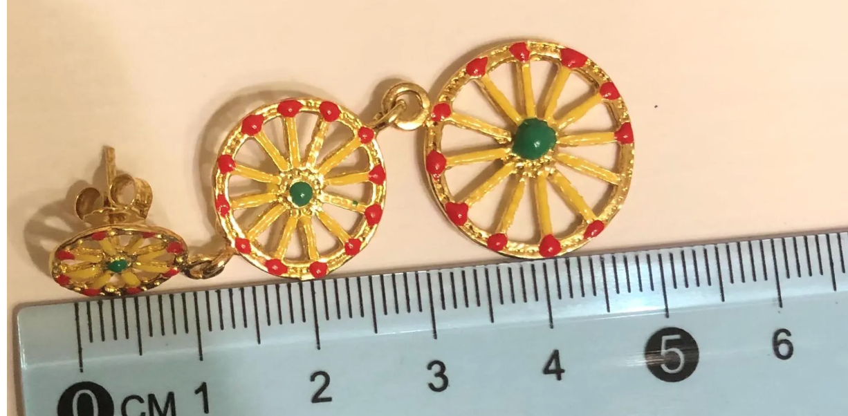 Add a touch of Sicilian charm to your jewelry collection with these exquisite handcrafted dangle earrings featuring a traditional Sicilian cart design. Made from finely decorated, gold-plated sterling silver, these earrings are a true work of art. Elevate your style with these unique and elegant earrings that are sure to make a statement wherever you go.