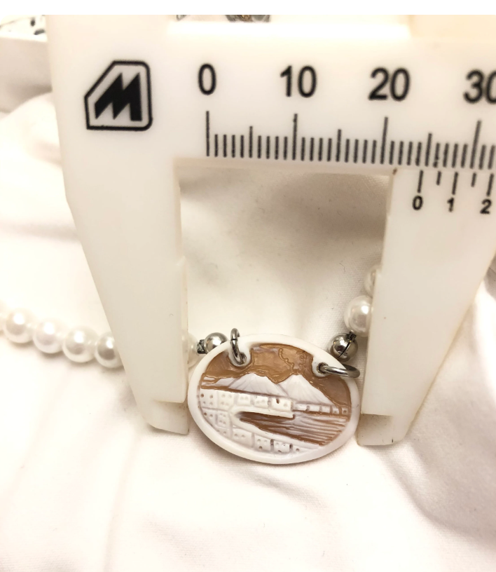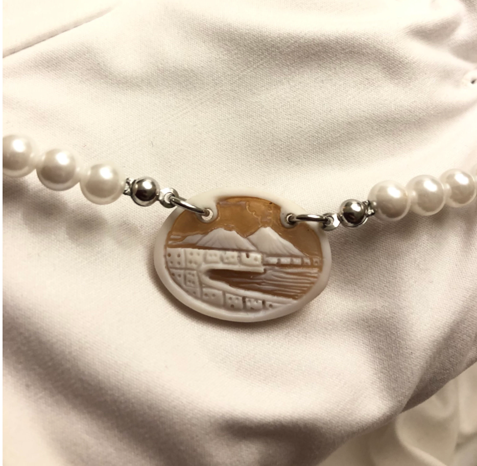 Handcrafted Swarovski Pearl (components) Necklace with Hand-Engraved Cameo – Vesuvius and Napoli Landscape