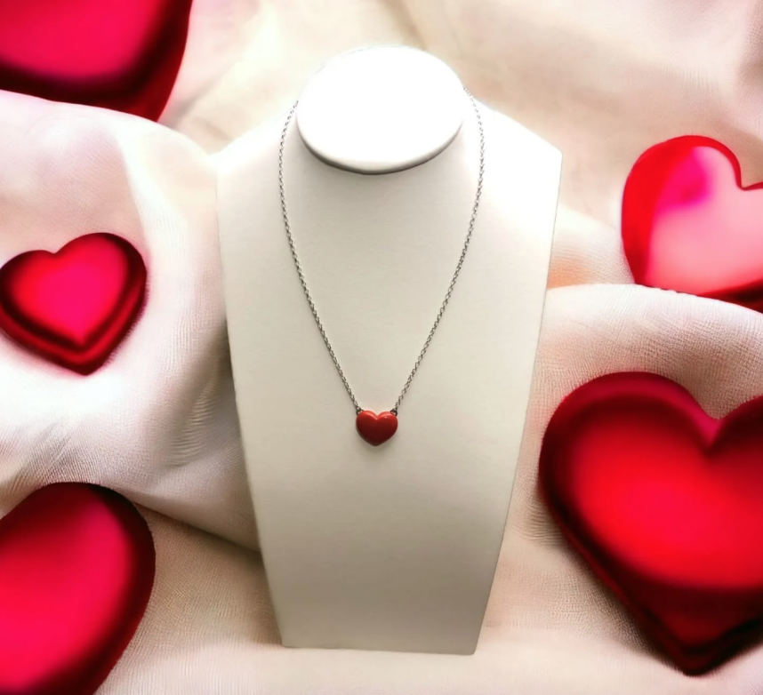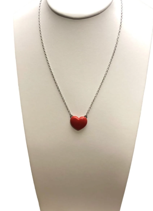 This necklace is a symbol of love, adorn your neckline with timeless elegance and natural charm with our 925 sterling silver rolò necklace featuring a stunning coral paste heart pendant. Handcrafted with care, this exquisite piece seamlessly blends luxurious silver craftsmanship with the organic beauty of coral. Each delicate link of the rolò chain adds a touch of sophistication, while the vibrant coral paste heart infuses the design with a pop of color and whimsical allure. Whether you’re dressing up for a special occasion or adding a touch of glamour to your everyday ensemble, this necklace effortlessly elevates your style with its understated grace and unique allure. Embrace the beauty of nature and the craftsmanship of fine jewelry with our silver rolò necklace adorned with a captivating coral paste heart