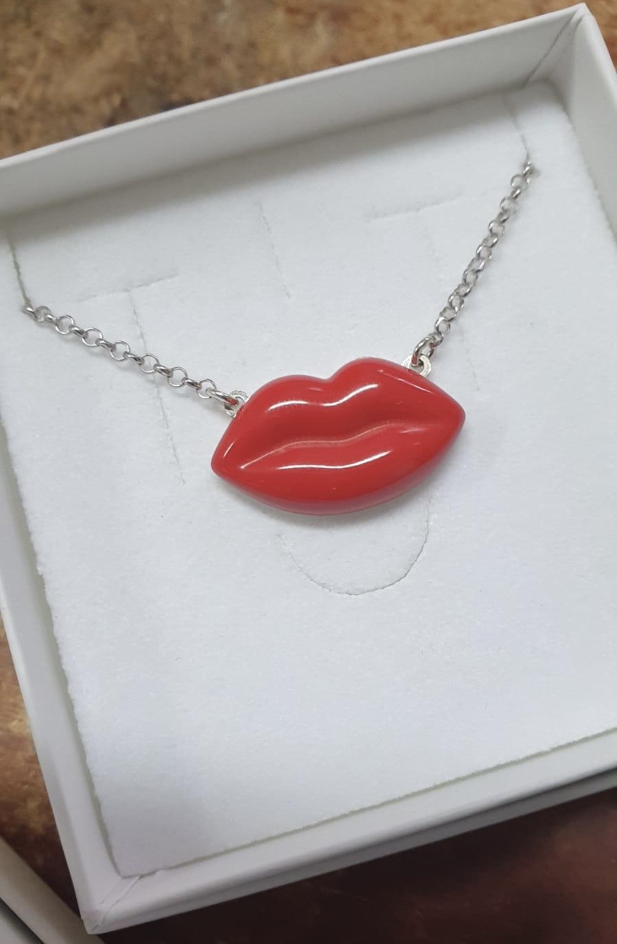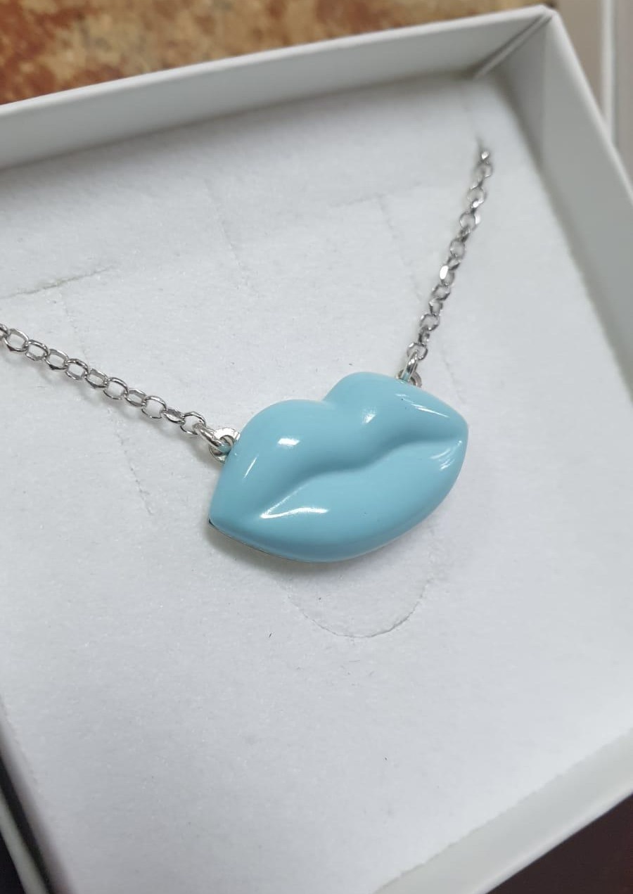 Silver 925 Necklace with lips made of coral paste or turquoise paste mounted on silver 925