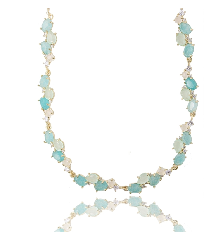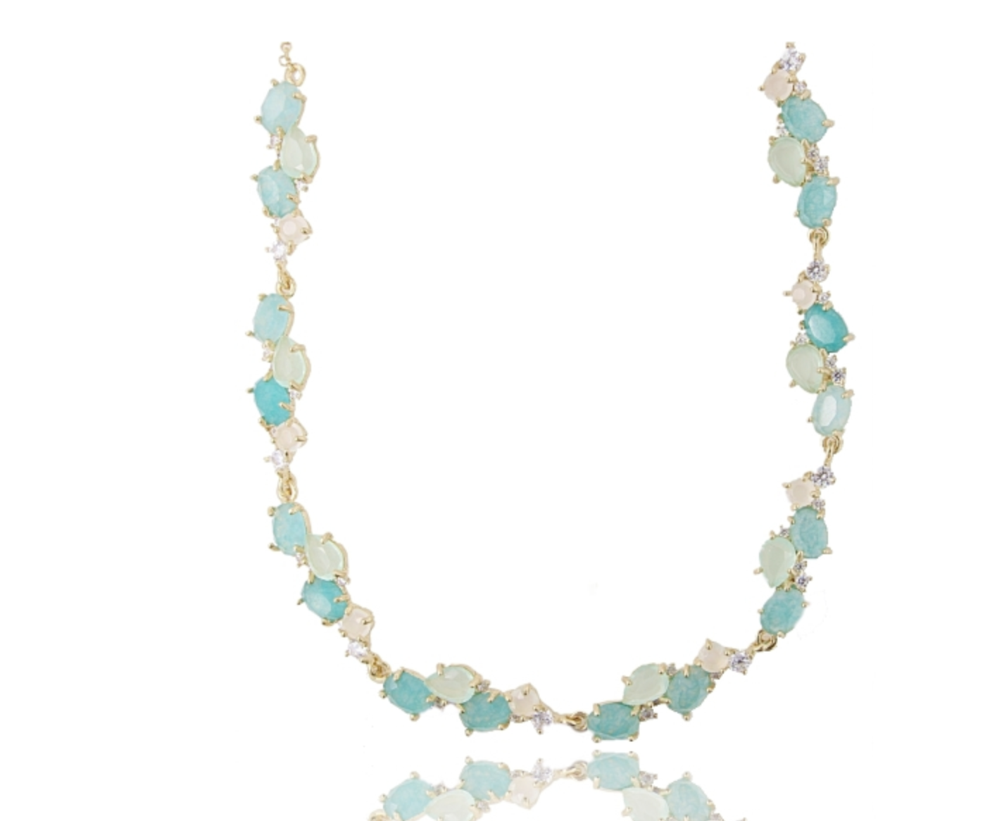 Elevate your look with this elegant and refined gold-plated sterling silver necklace, featuring vibrant hydrothermal stones and sparkling cubic zirconia accents.