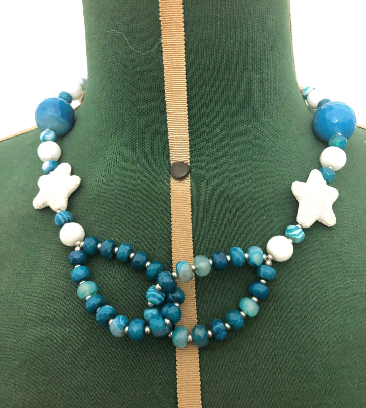 Choker with blue agata and sea stars