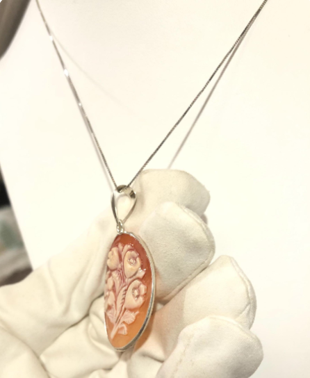 Perfect as a unique gift for her, this Italian cameo makes a meaningful present for anniversaries, birthdays, weddings, or collectors of fine cameo jewelry. Ideal for lovers of handmade jewelry, Italian craftsmanship, and classic floral designs.