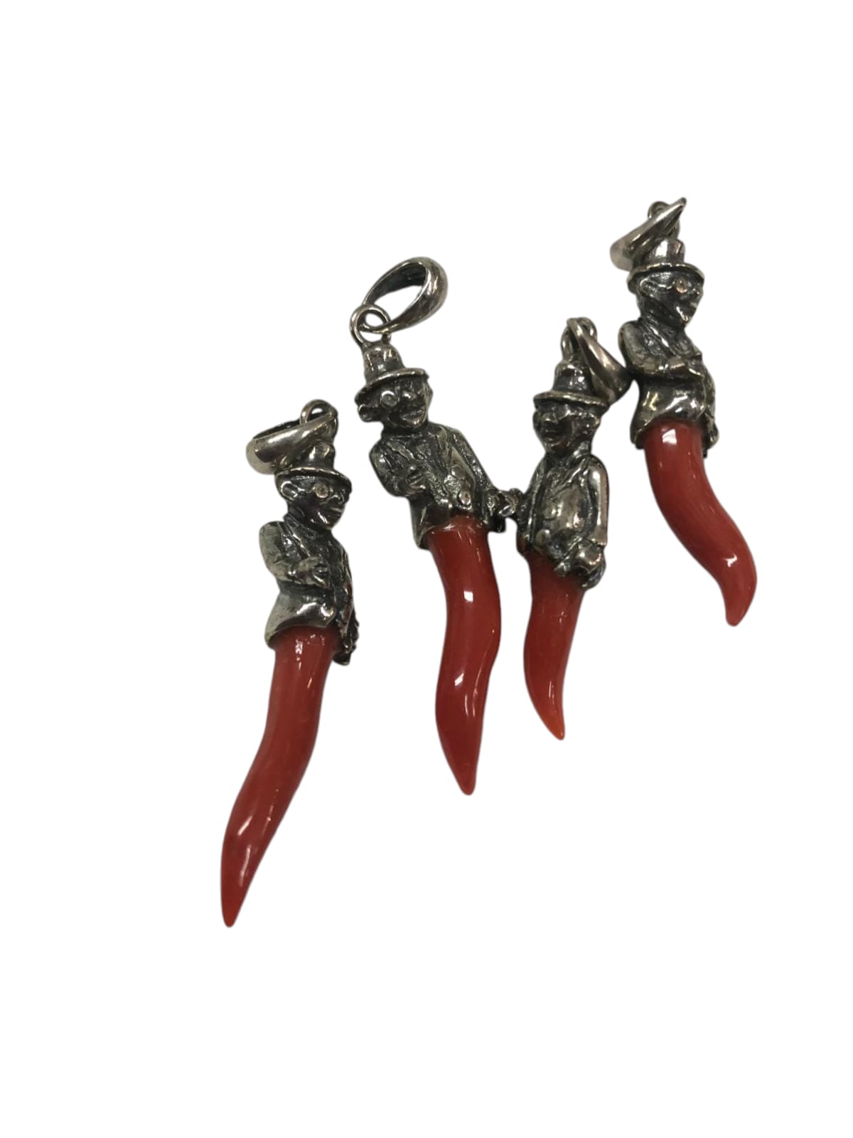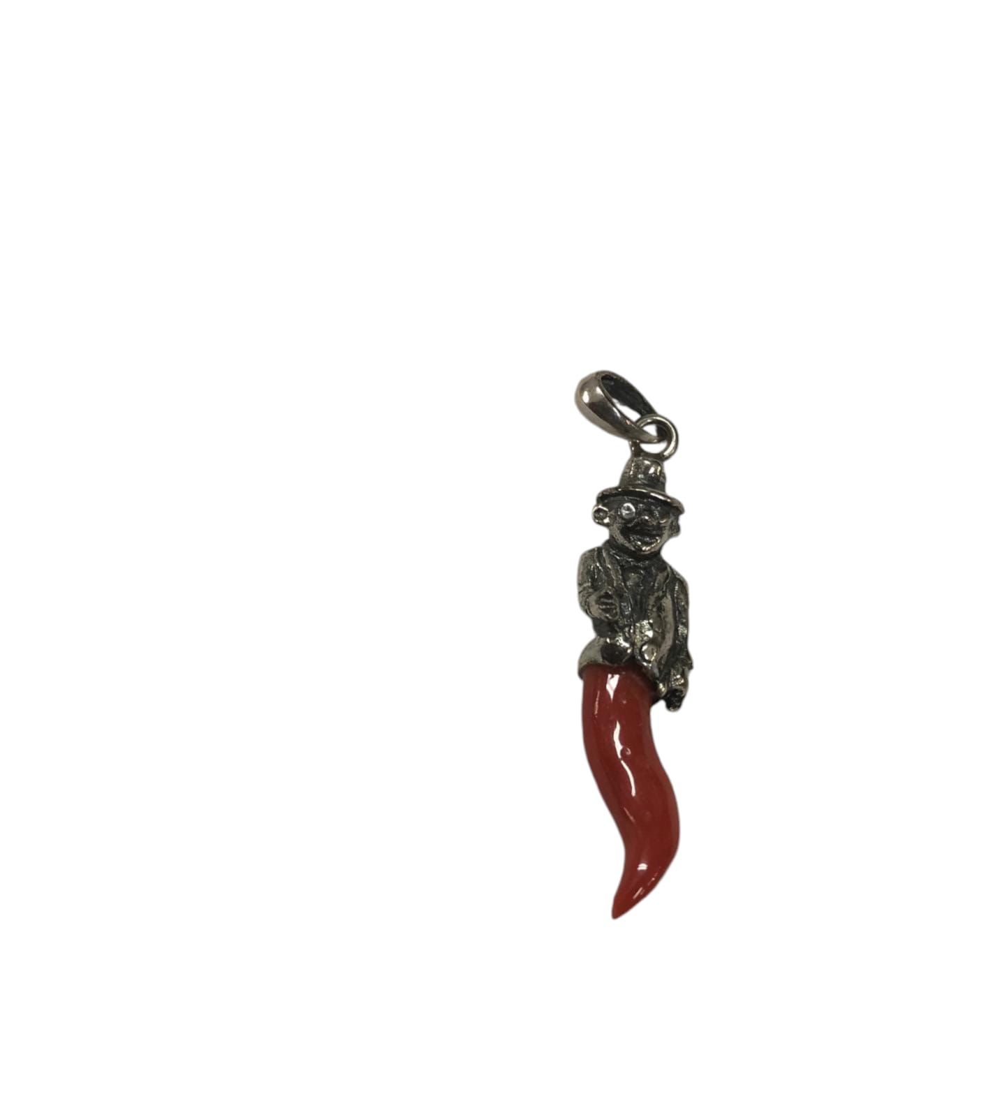 Red Coral Horn Pendant with 925 Silver Lucky Charm