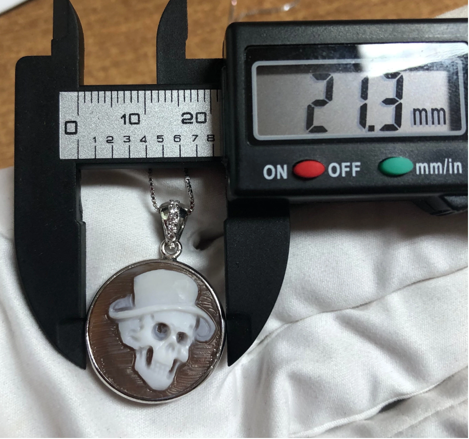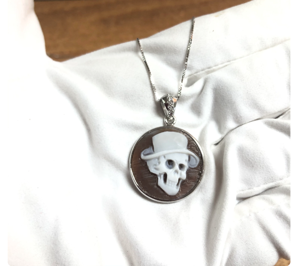 Add a touch of mystique and elegance to your jewelry collection with this handcrafted skull cameo pendant. Skillfully engraved and mounted in 925 sterling silver, this unique piece exudes a blend of sophistication and edge. Complete with a 925 sterling silver hook, this pendant is perfect for those who appreciate artisanal craftsmanship and distinctive accessories. Elevate your style with this statement piece that effortlessly combines artistry and allure. Ideal for gifting or treating yourself to a one-of-a-kind treasure.