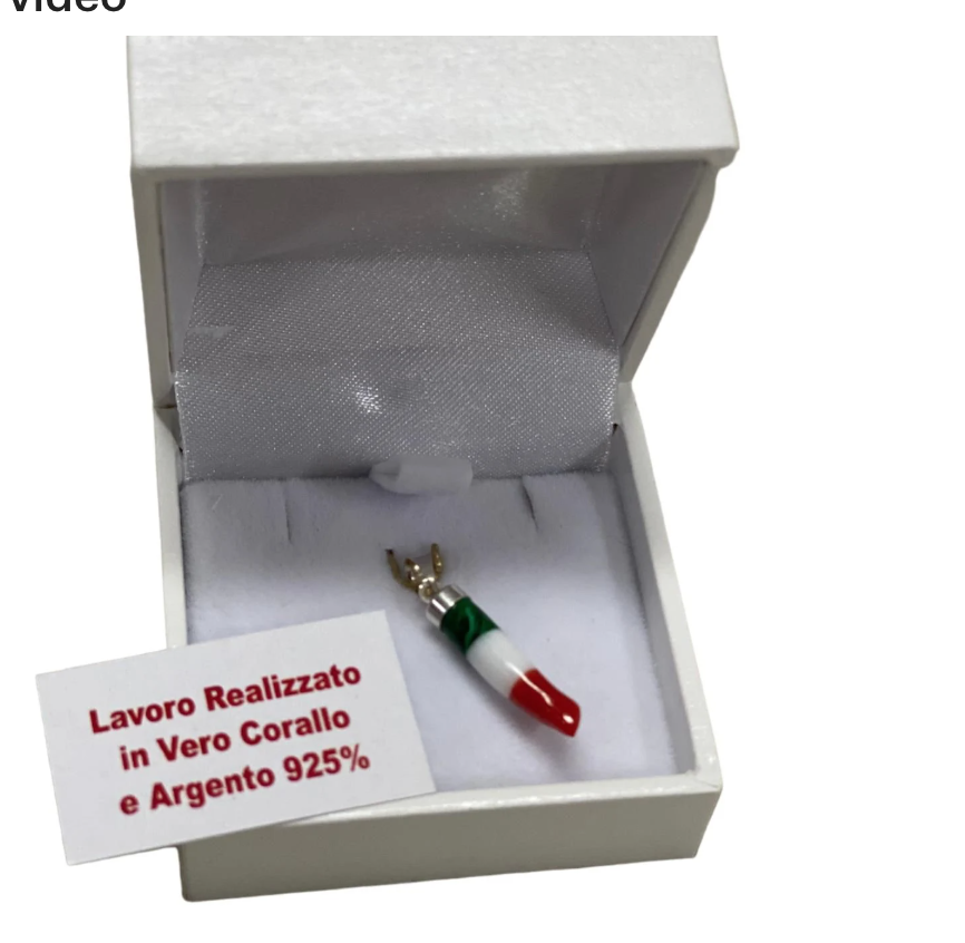 A beautiful and original tricolour horn made by our artisan in Torre del greco with red coral, malachite and mother-of-pearl mounted in 925 silver.