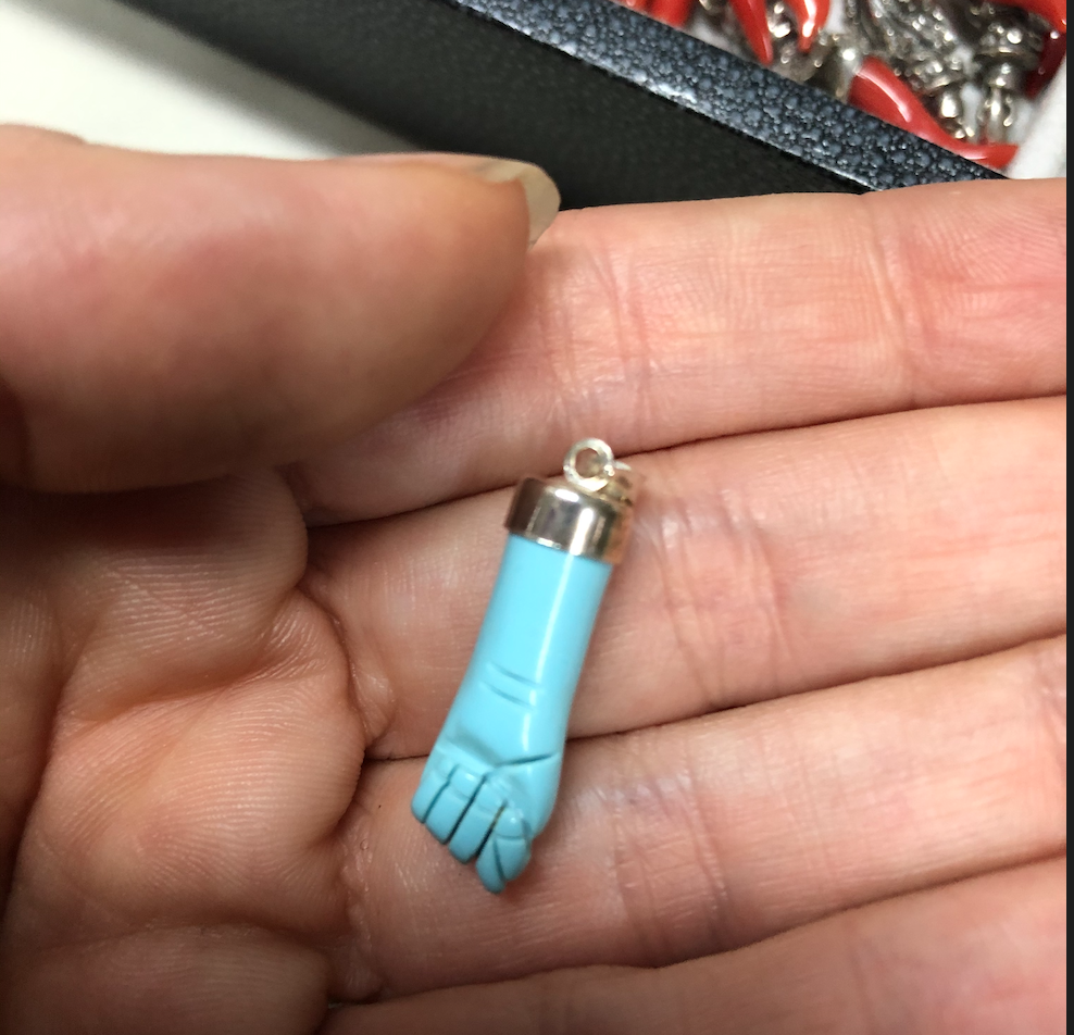 Turquoise paste mano figa pendant mounted on 925 sterling silver