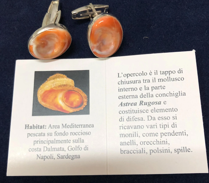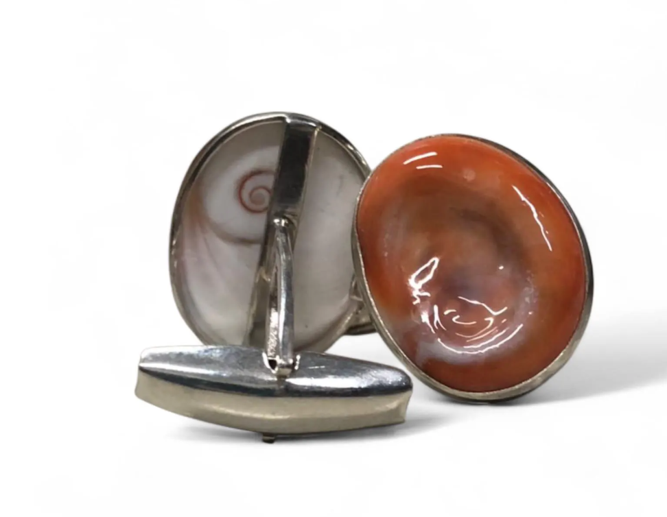 Elevate your formal attire with these exquisite handmade cufflinks, lovingly crafted in Italy from 925 sterling silver and set with genuine Eye of Saint Lucia shells (opercula of Astraea rugosa). Each pair is uniquely shaped by artisans, making every piece one-of-a-kind.